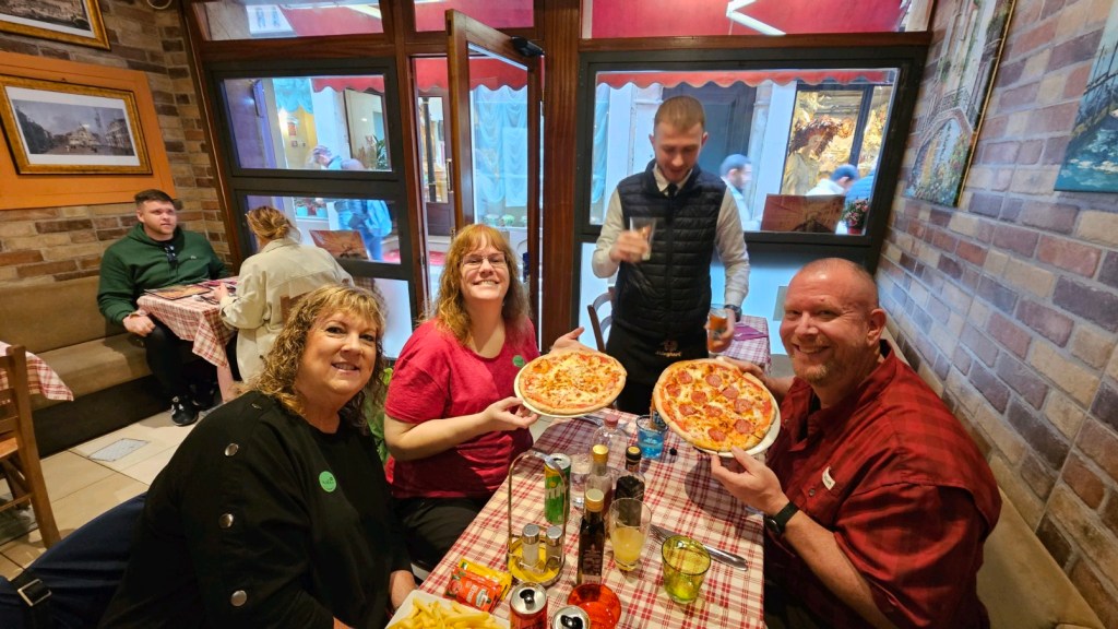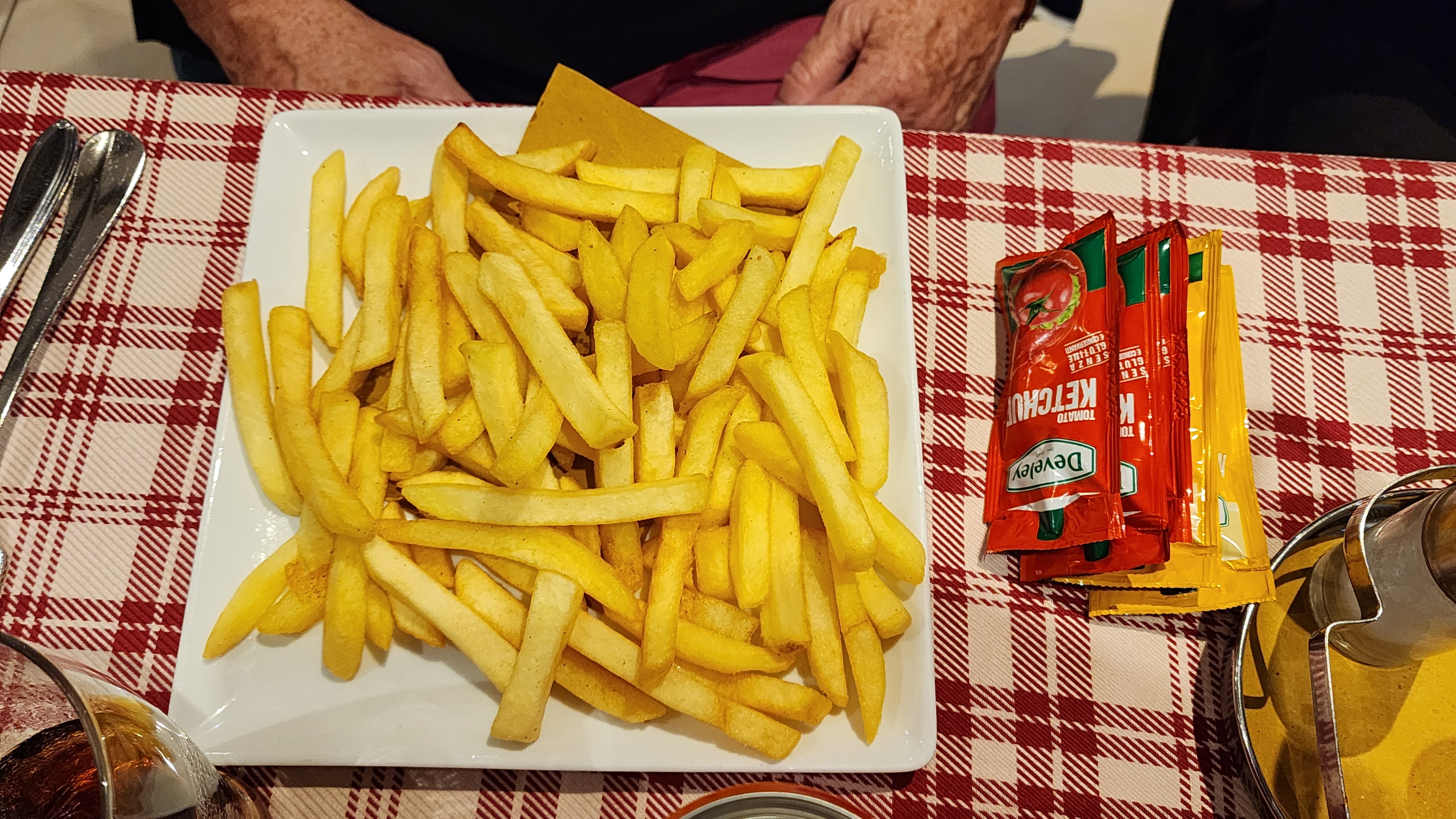 We then had a lunch break, bruschetta as an appetizer and pizza for Barry, LJ and I and Brenda was happy to find some French fries. Our server was very nice and chatted with us.