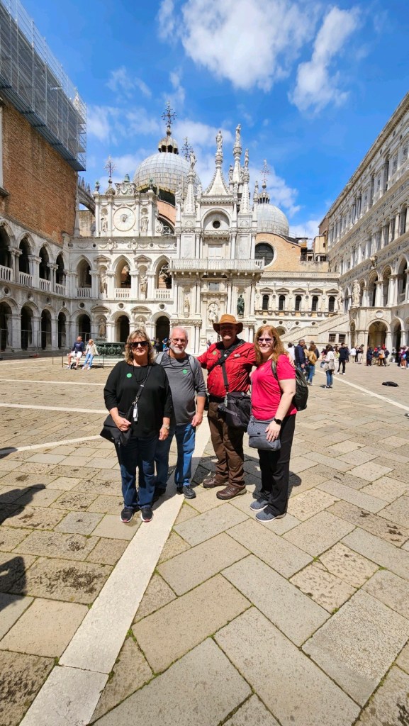Post lunch we went to the Doge’s Palace. The Doge is an elected position, elected for life and typically later in life. They had to accept the position when elected and it is decorated to impress all those who would visit. It was quite grand with lots of gold leaf and huge rooms.