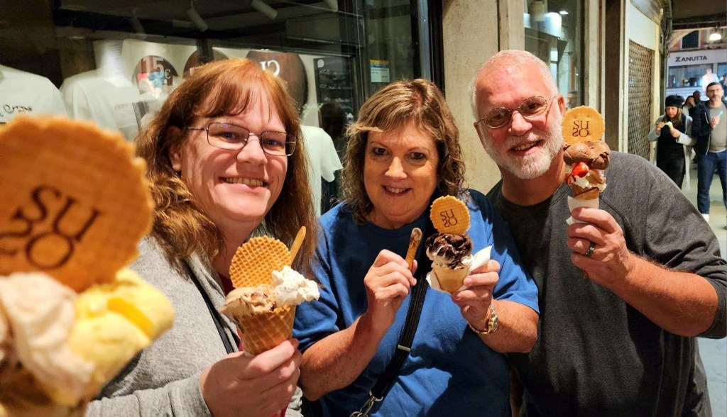 We ended the day with… gelato of course! We are setting a goal of twice a day gelato, and of course yesterday there was none so we will need to make those up as well.