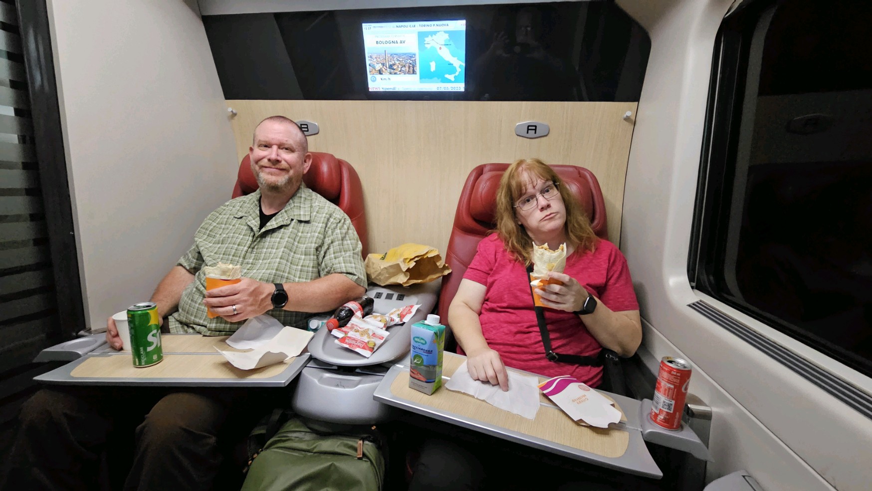 The highest speed we saw on the trip was 299 km/h which equals 186 mph. We were flying! Of course, Barry, we now call him The Mayor, ran into someone he knew on the train from Florence to Milan and this trend would continue everywhere we went until Friday.