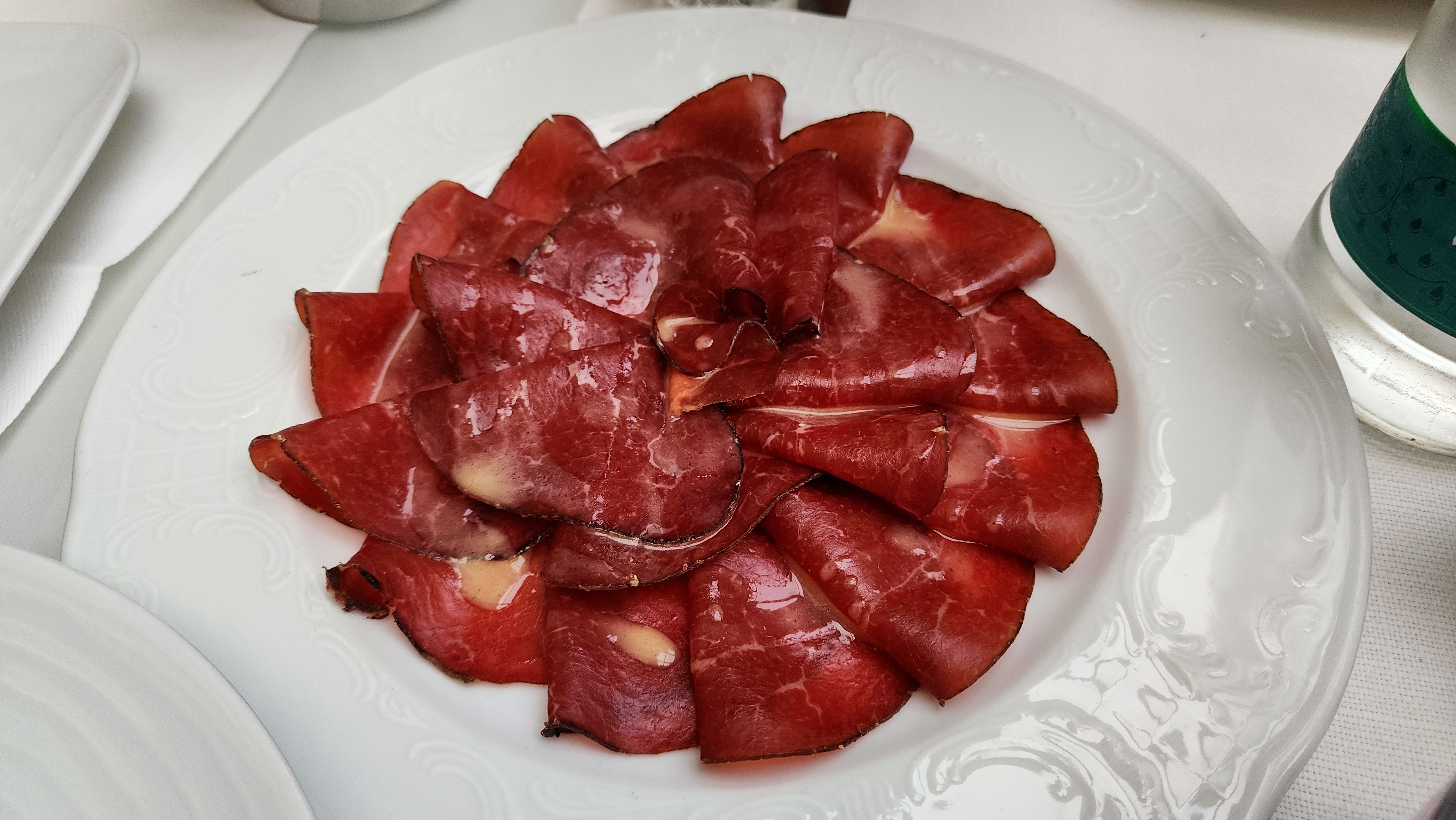 Appetizers included creamed peas with a low temperature egg, the house special, home made bresaola (dried meat) and a mixed local goat cheese selection.